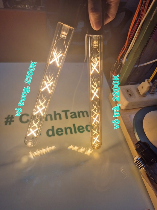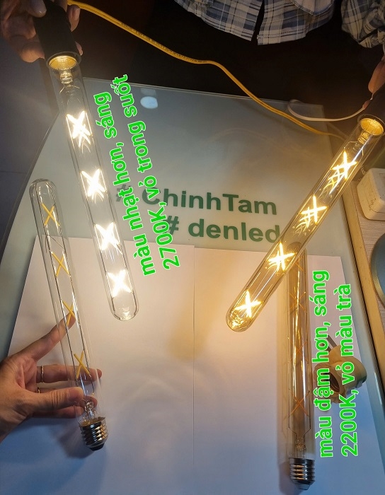 • Màu sắc: Vàng 2200K vỏ trà (màu đậm) -2200K vỏ trong suốt (màu đậm) - 2700K vỏ trà (màu nhạt) - 2700K vỏ trong suốt (màu nhạt) cho ra ánh sáng vàng ấm áp, tim led là 4 hình X (vui lòng chọn đúng mã màu ánh sáng đèn.)