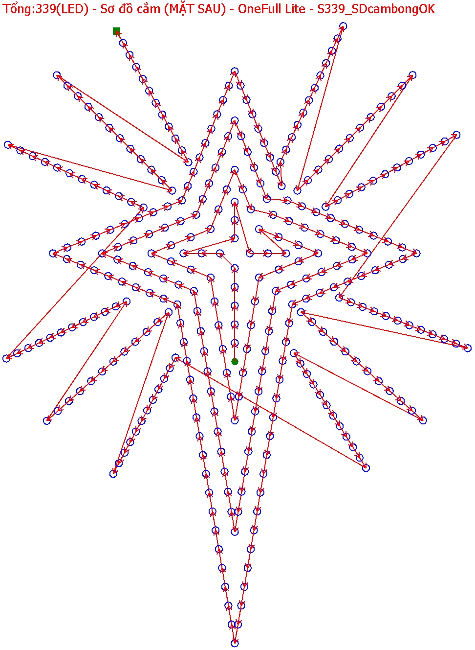 Khi lấy mạch full sẽ cho kèm theo sơ đồ cắm bóng, các bạn nhớ cắm bóng đúng thứ tự vẽ của 339 con led F8 full màu IC trên sơ đồ nhé - điểm led số 1 sẽ tương ứng với vị trí chấm tròn, điếm led 339 sẽ tương ứng với vị trí chấm hình vuông trên sơ đồ cắm led. Và đừng quên xác định đúng chiều input, output của dây Data trên dây led nhé.