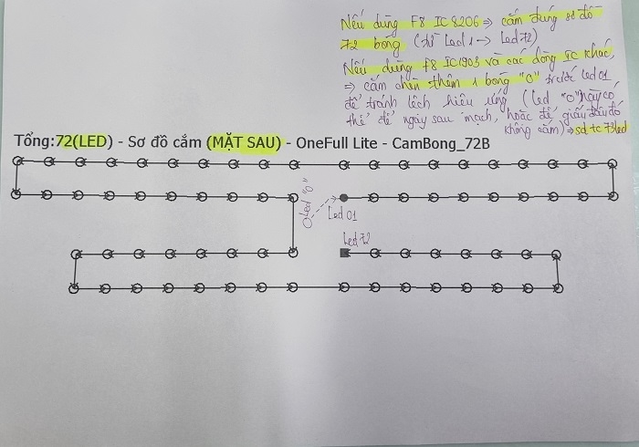 - Hai hàng phía trên mỗi hàng 20 bóng, hai hàng phía dưới mỗi hàng 16 bóng, tổng cộng 72 bóng nếu dùng F8 IC8206 nhé.