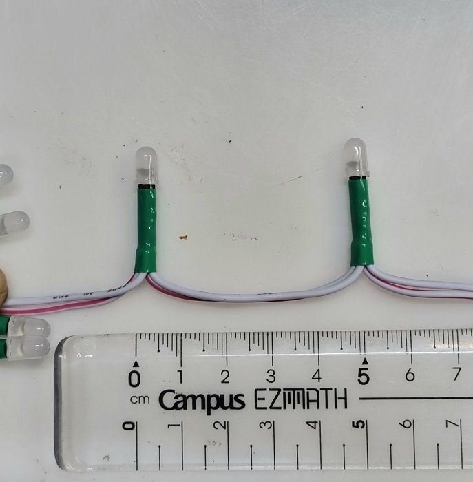 ● Khoảng cách dây nối giữa 2 led: khoảng 5cm