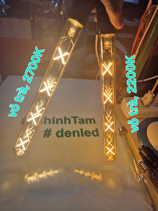 • Màu sắc: Vàng 2200K vỏ trà (màu đậm) -2200K vỏ trong suốt (màu đậm) - 2700K vỏ trà (màu nhạt) - 2700K vỏ trong suốt (màu nhạt) cho ra ánh sáng vàng ấm áp, tim led là 4 hình X (vui lòng chọn đúng mã màu ánh sáng đèn.)