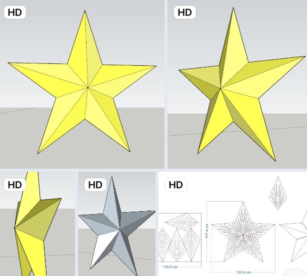 ● Phác thảo của thân ngôi sao 5 cánh: kích thước khoảng1200mm, dày 150mm (nếu F8 fullcolor phân bổ cắm bóng tâm led -tâm led khoảng 3.8 cm theo bản vẽ, còn tuỳ theo khách về làm thực tế muốn tự điều chỉnh xê xích cắm bóng giãn ra co lại thì có thể tăng giảm kích thước ngôi sao1 chút nhé).