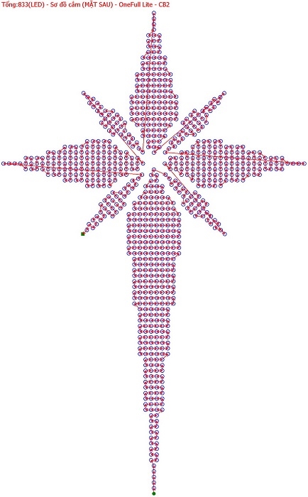 Video quay mô phỏng hiệu ứng chạy ngôi sao 8 cánh gồm 833 led F8 full màu IC trên mạch Onefull lite (quay trên màn hình xem rõ hơn trên file video mô phỏng xuất từ phần mềm). Phác thảo của ngôi sao 8 cánh lớn: phần thân cao khoảng 3 mét, ngang 1m9, 1 cánh dài 305 led, 3 cánh vừa 1 cánh gồm 128 led, 4 cánh nhỏ 1 cánh gồm 36 led. Khi lấy mạch full sẽ cho kèm theo sơ đồ cắm bóng, các bạn nhớ cắm bóng đúng thứ tự vẽ của 833 con led F8 full màu IC trên sơ đồ nhé - điểm led số 1 sẽ tương ứng với vị trí chấm tròn, điếm led 833 sẽ tương ứng với vị trí chấm hình vuông trên sơ đồ cắm led. Và đừng quên xác định đúng chiều input, output của dây Data trên dây led nhé. Lưu ý: - mạch full khi chạy tính đúng theo điểm pixel led nhé nên khách dùng phải căn đúng cái sơ đồ cắm dây tổng 833 điểm led full - sơ đồ cắm dây mình sẽ cung cấp, khách chú ý chọn đúng chủng loại led full IC tương thích với phần code khi yêu cầu mình xuất file nạp mạch hén.
