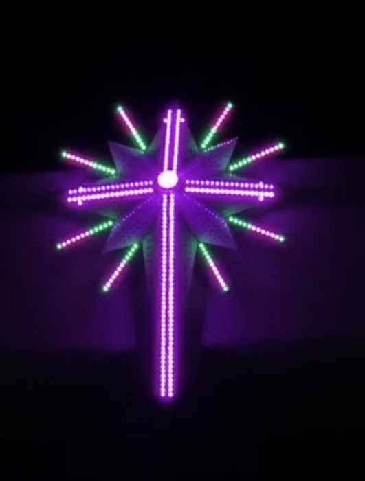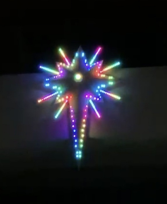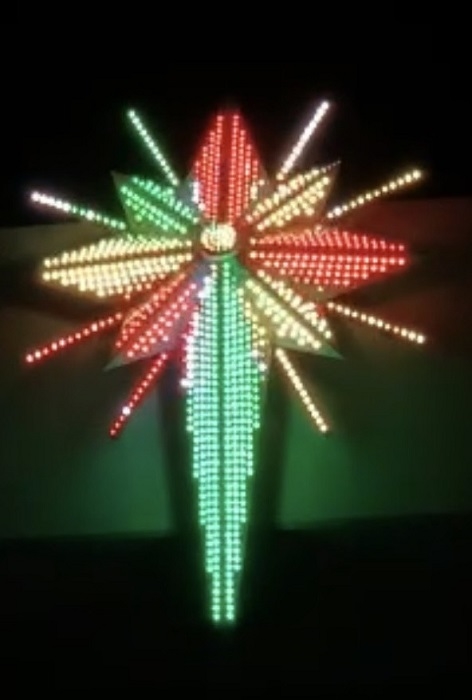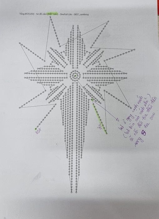 * Phác thảo của ngôi sao: kích thước tính làm tròn thì cao khoảng 2400mm, ngang 1460mm, cao 150mm (nếu F8 fullcolor phân bổ cắm bóng tâm led -tâm led khoảng 3 cm theo bản vẽ, còn tuỳ theo khách về làm thực tế muốn tự điều chỉnh xê xích cắm bóng giãn ra co lại thì có thể tăng giảm kích thước ngôi sao1 chút nhé).