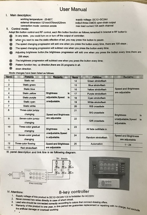 Có remode đi kèm, điều khiển bằng sóng RF nên có ưu điểm hơn các bộ điều khiển RGB dùng mắt hồng ngoại là có thể chỉnh được khoảng cách xa hơn, xuyên được tường